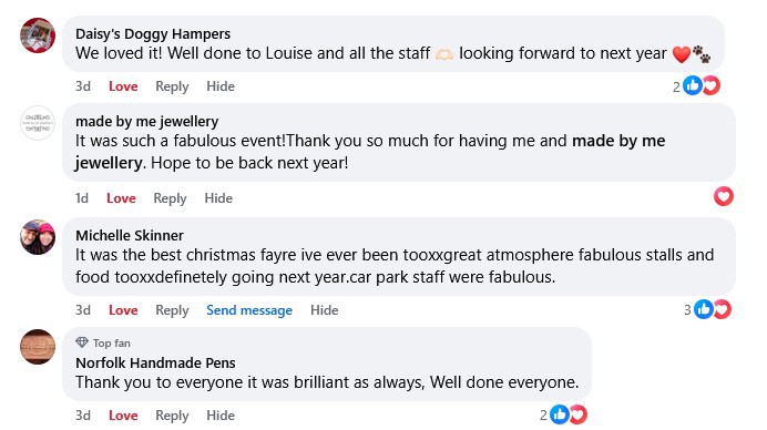 Thank you for making our 2025 Christmas Fair & Tasting Weekend so successful we have received amazing feedback from customers and stallholders - see below.