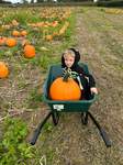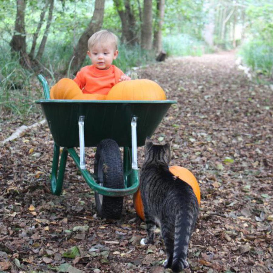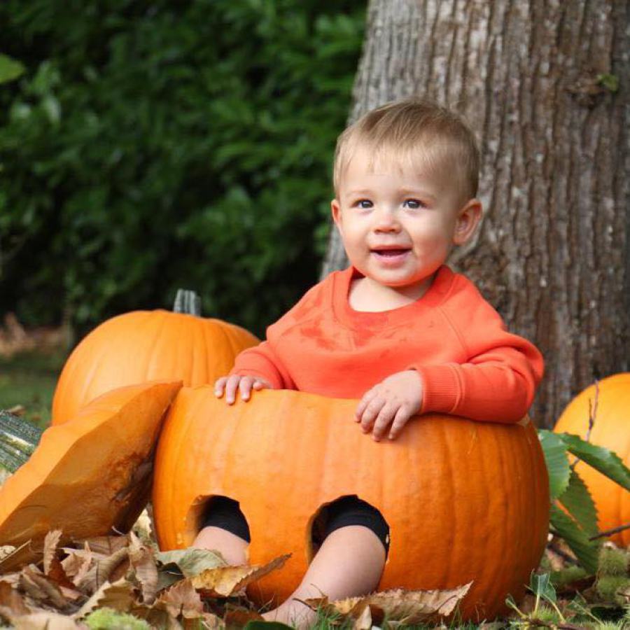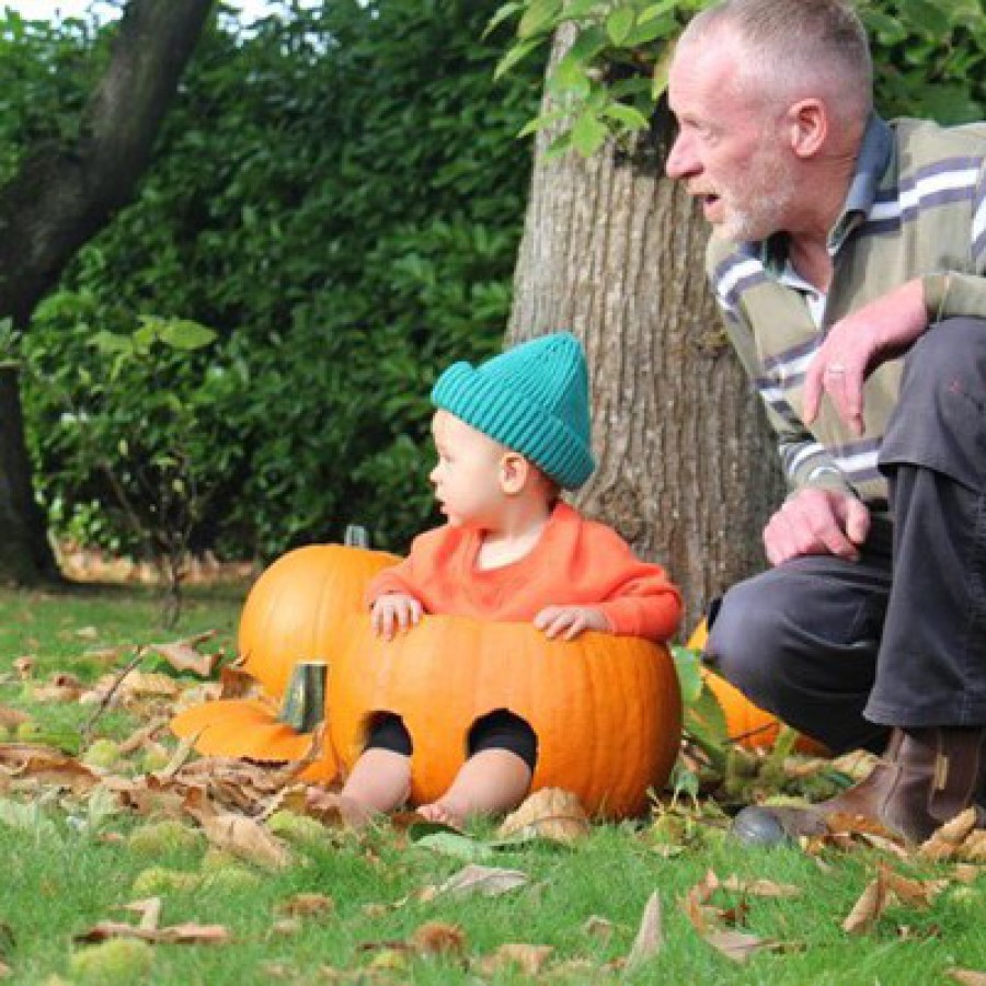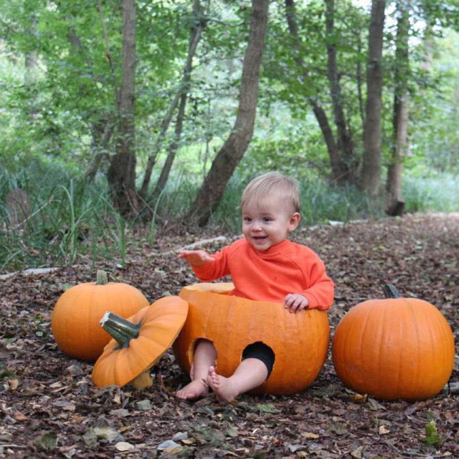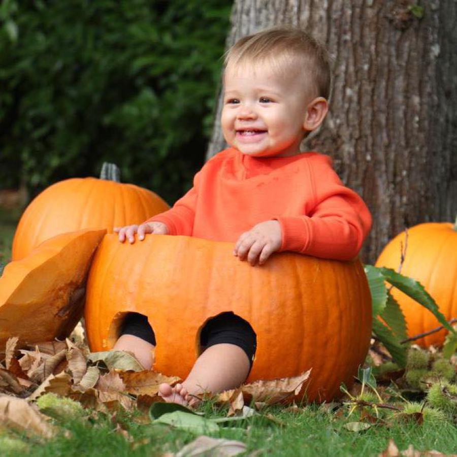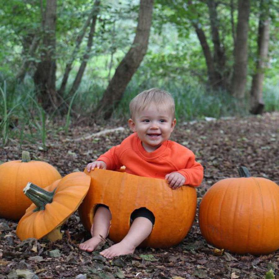 Our gorgeous pumpkin model is Theo and he is the nephew of Allen & Simon Meale. We think he looks very cute in one of our large pumpkins.