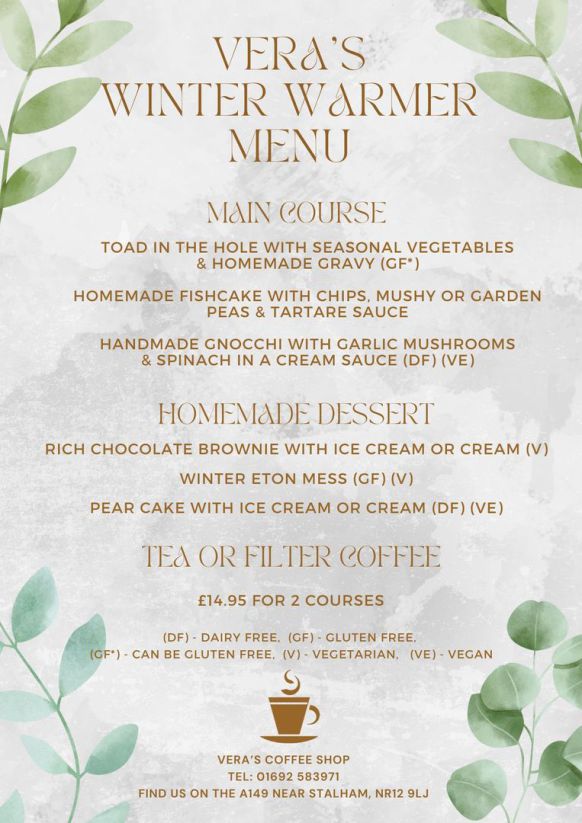 Our Winter Warmer Menu is available Monday to Friday from 12 noon to 15.00 pm throughout January.