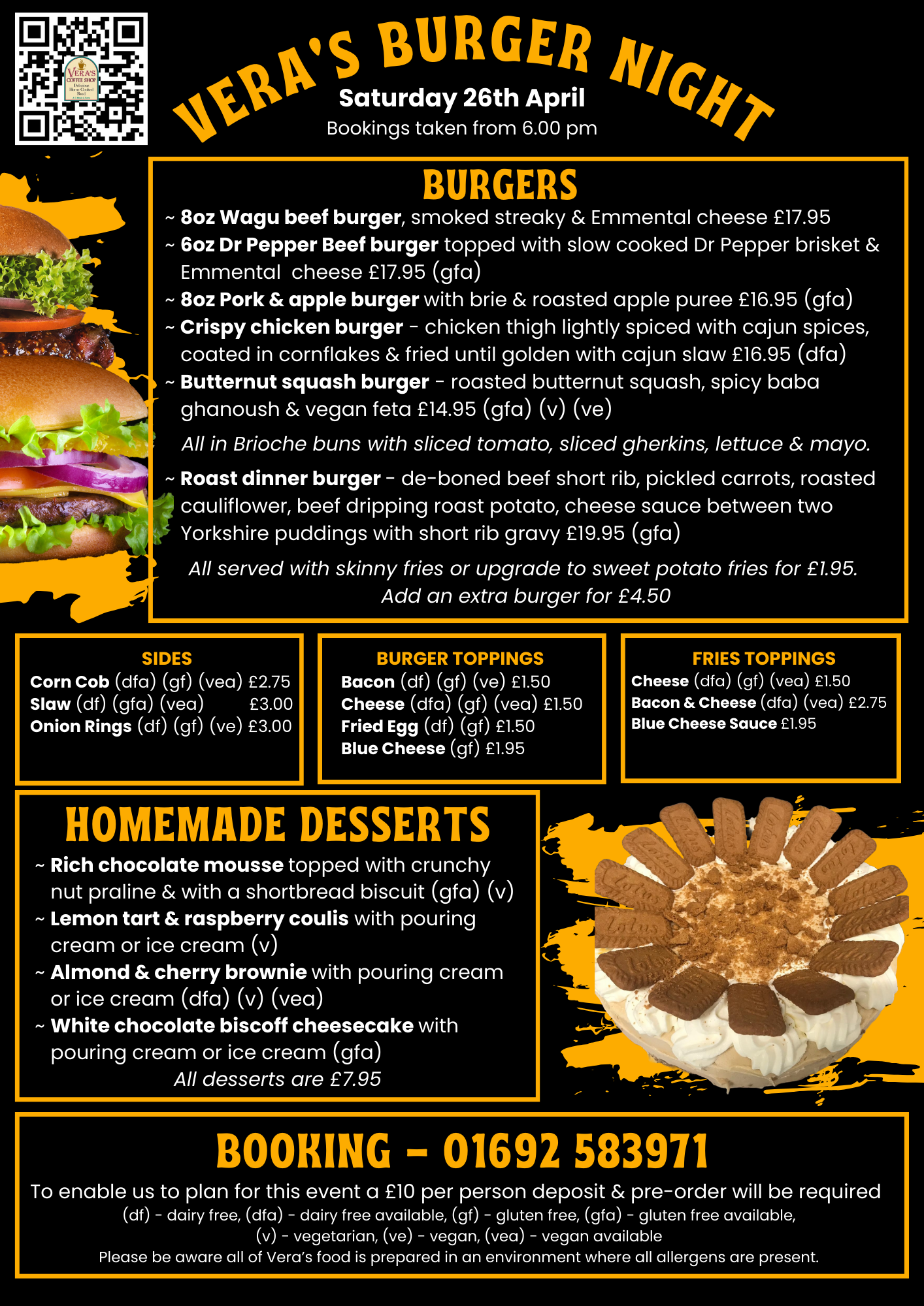 Join us for our Burger Night on Saturday 26th April; bookings taken form 6.00 pm