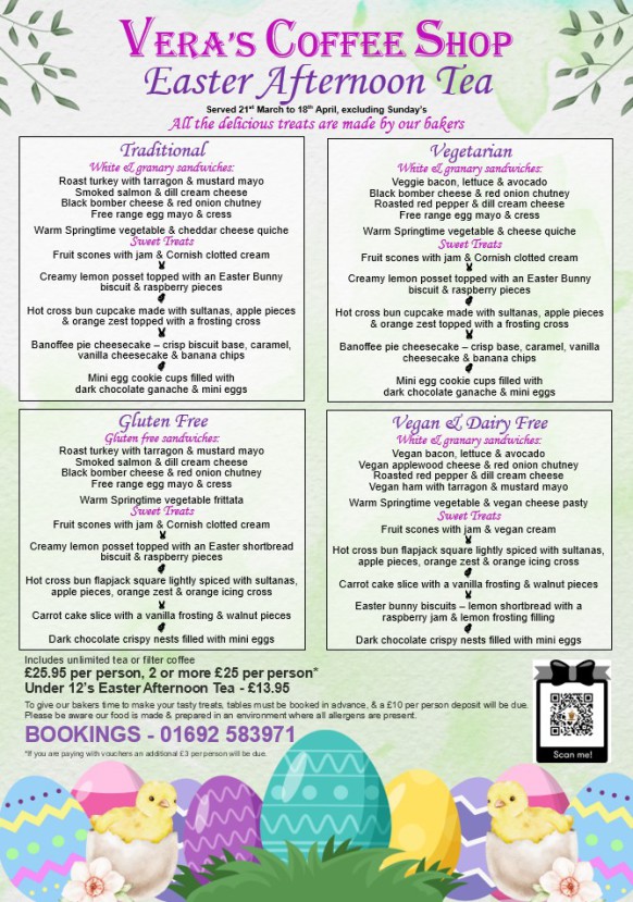 Enjoy our delicious Easter Afternoon Tea with your loved ones, family and friends. There are traditional, dairy free, gluten free, vegetarian, vegan and children's options available.