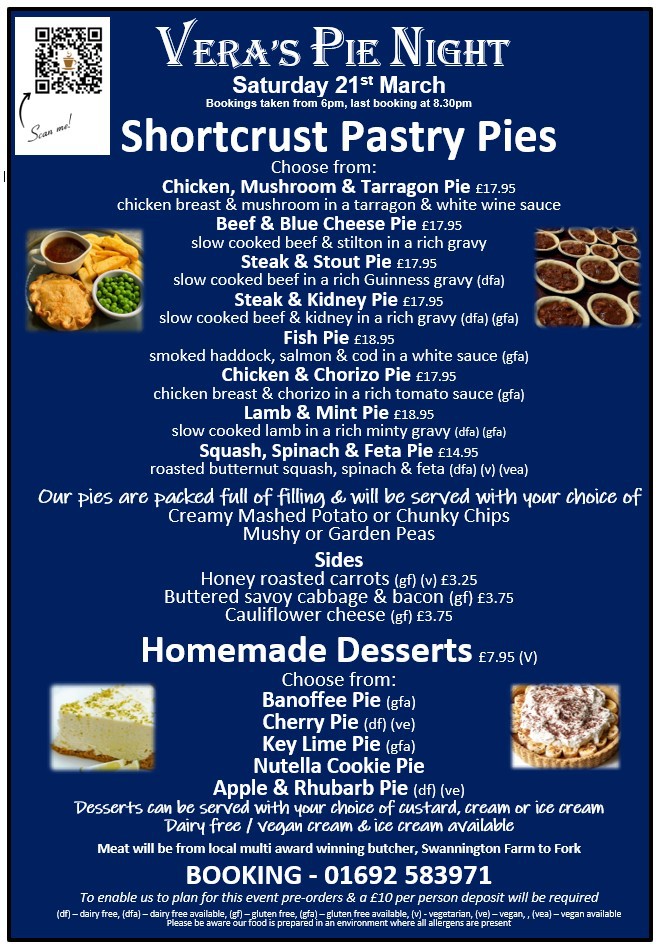 Pie Night Menu Click the link to download our pie night menu. A3 Pie Night Poster.pdf Adobe Acrobat document [378.7 KB]