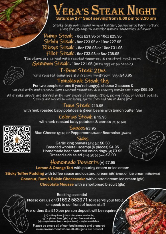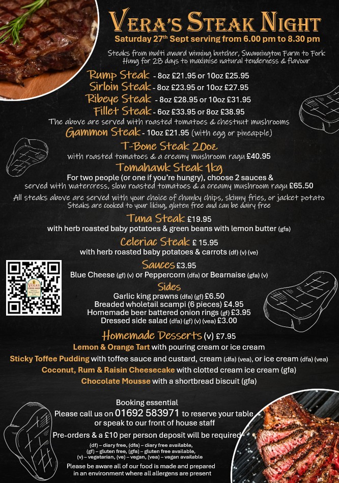 Join us for one of our very popular steak nights, these always sell out really quickly so book early to avoid